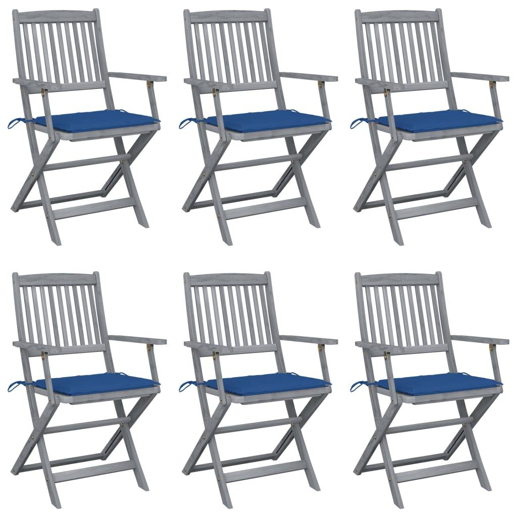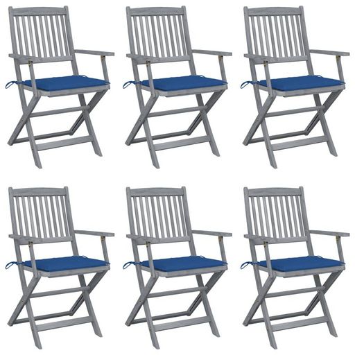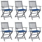 Chaises pliables d'exterieur lot de 6 et coussins Bois d'acacia