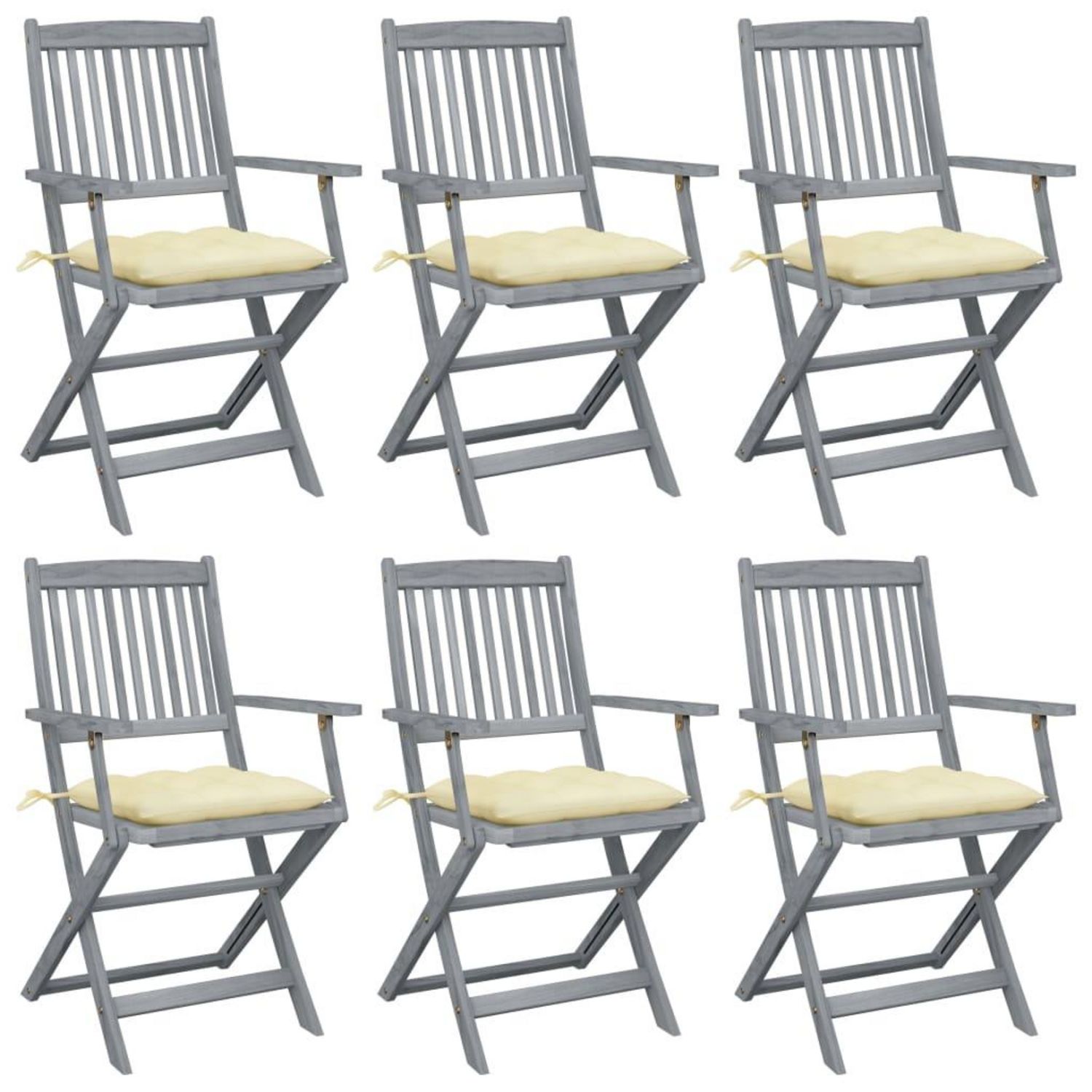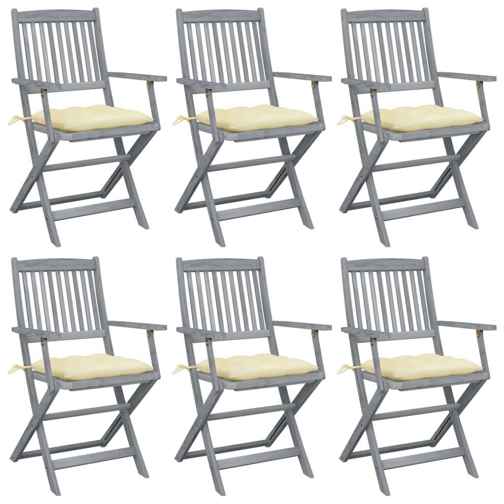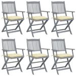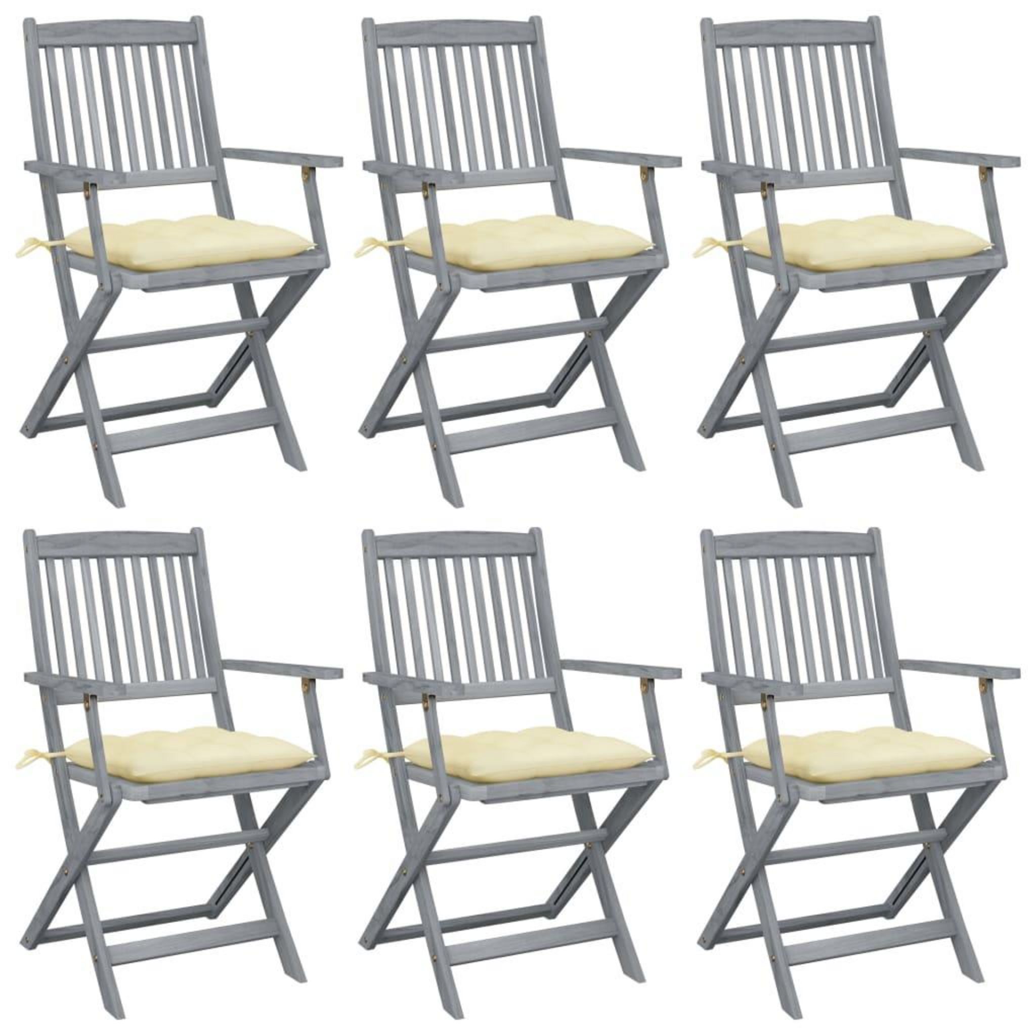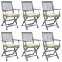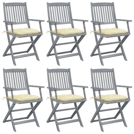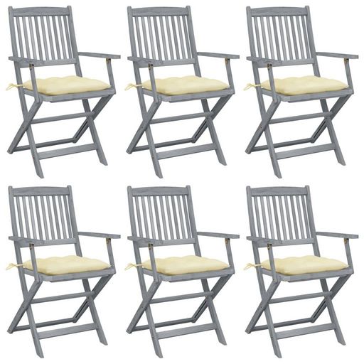 Chaises pliables d'exterieur lot de 6 et coussins Bois d'acacia