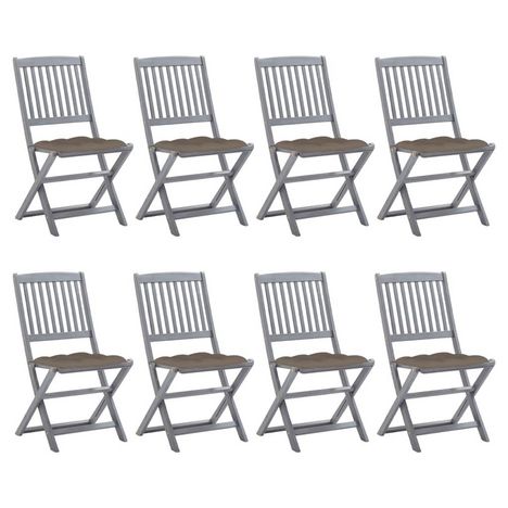 Chaises pliables d'exterieur lot de 8 et coussins Bois d'acacia