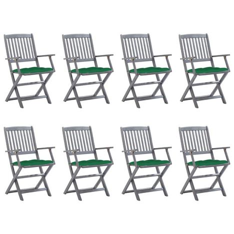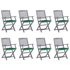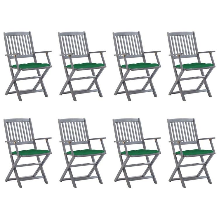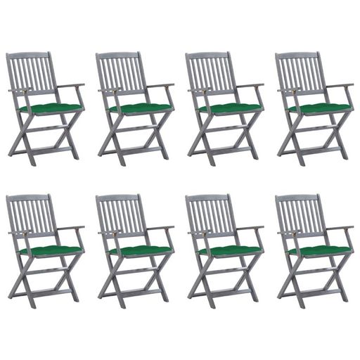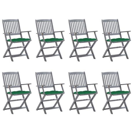 Chaises pliables d'exterieur lot de 8 et coussins Bois d'acacia