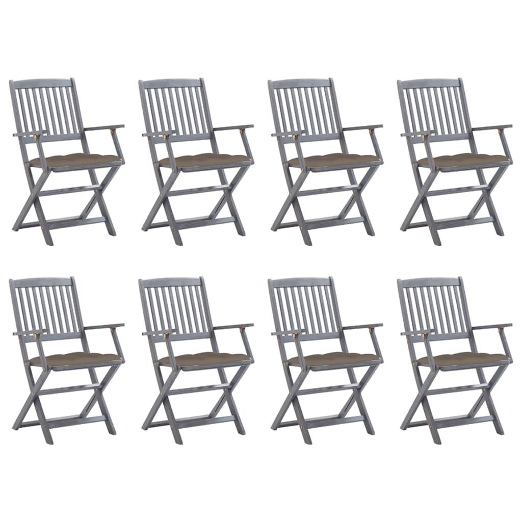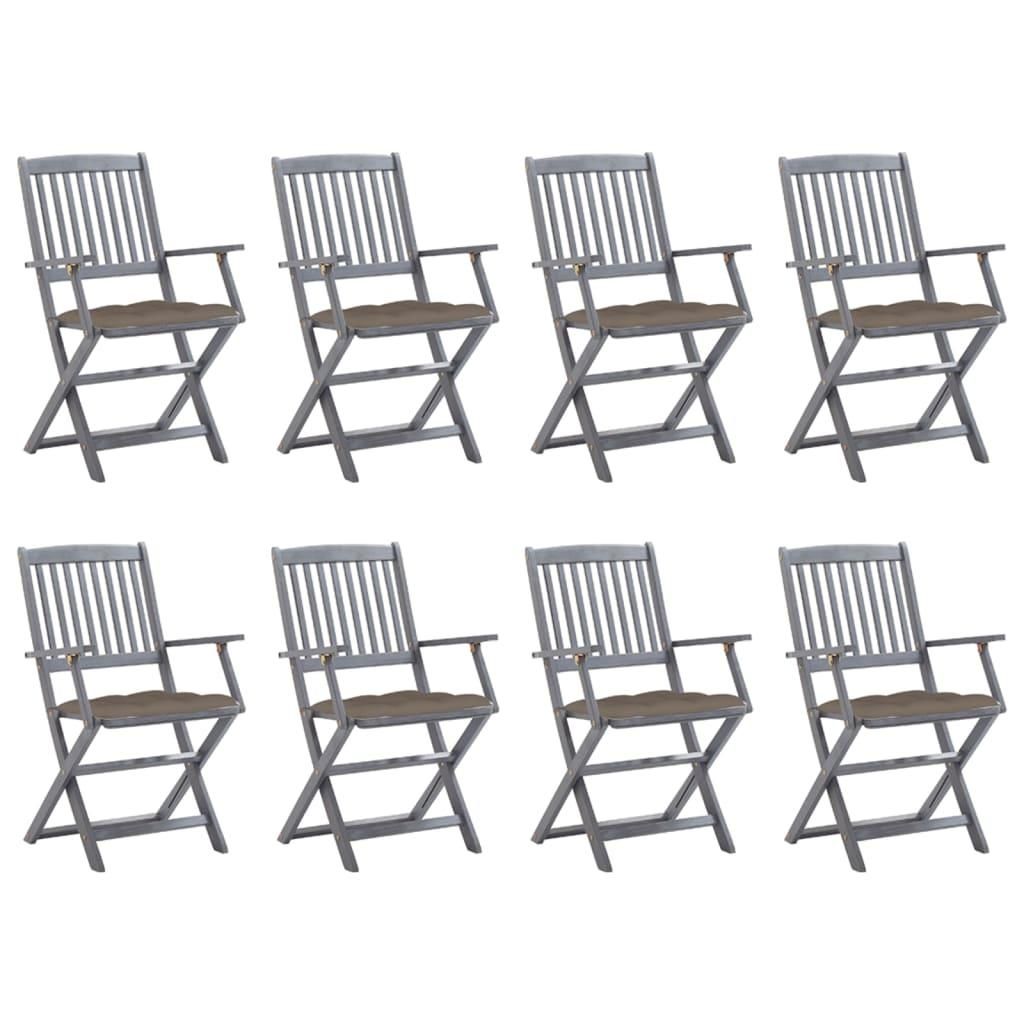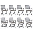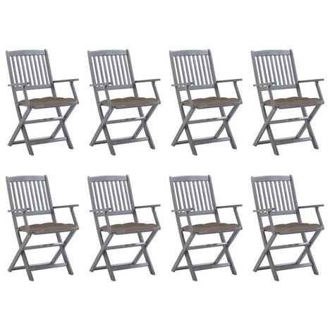 Chaises pliables d'exterieur lot de 8 et coussins Bois d'acacia