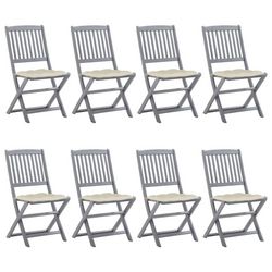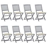 Chaises pliables d'exterieur lot de 8 et coussins Bois d'acacia