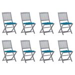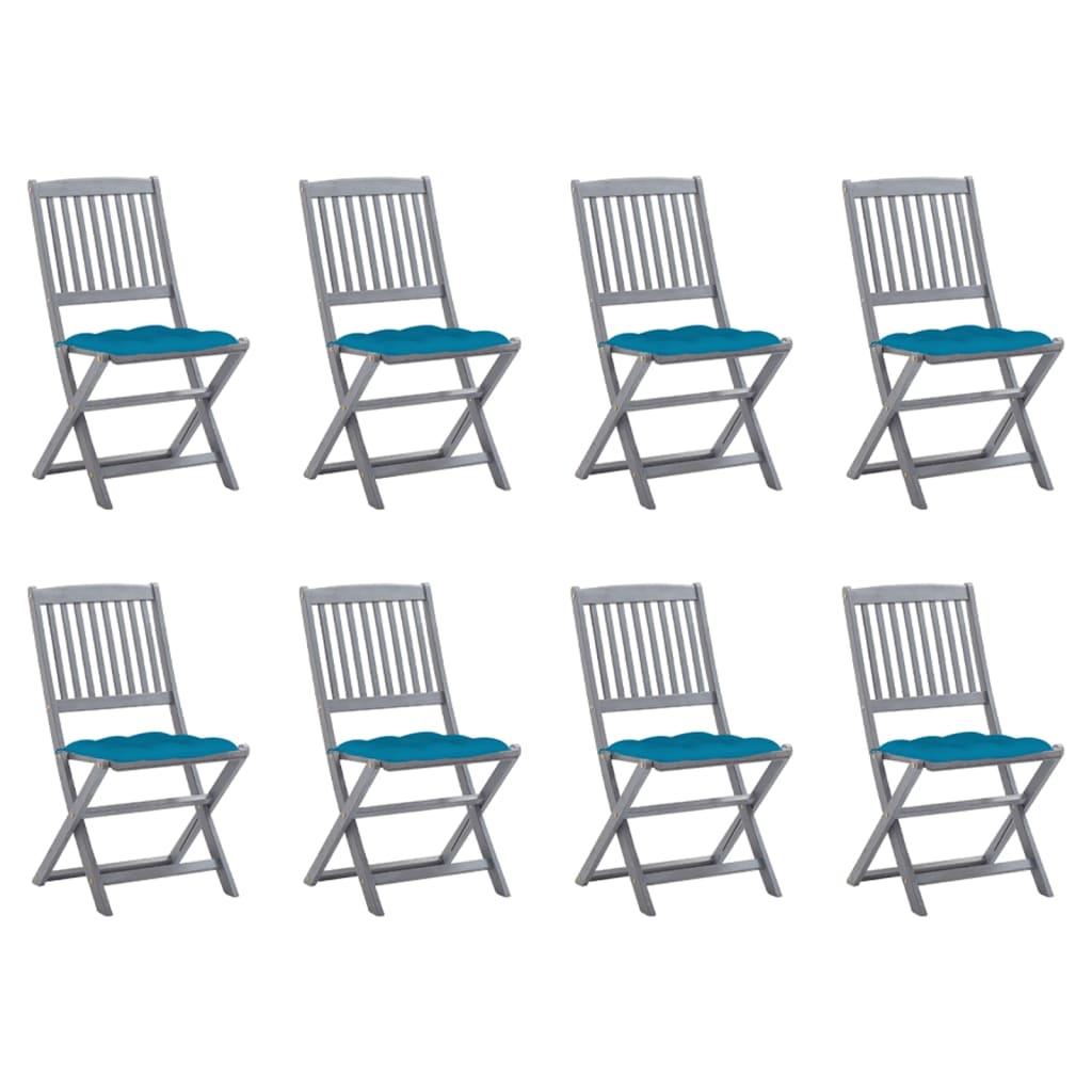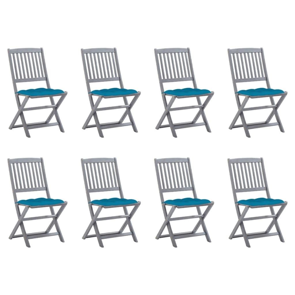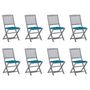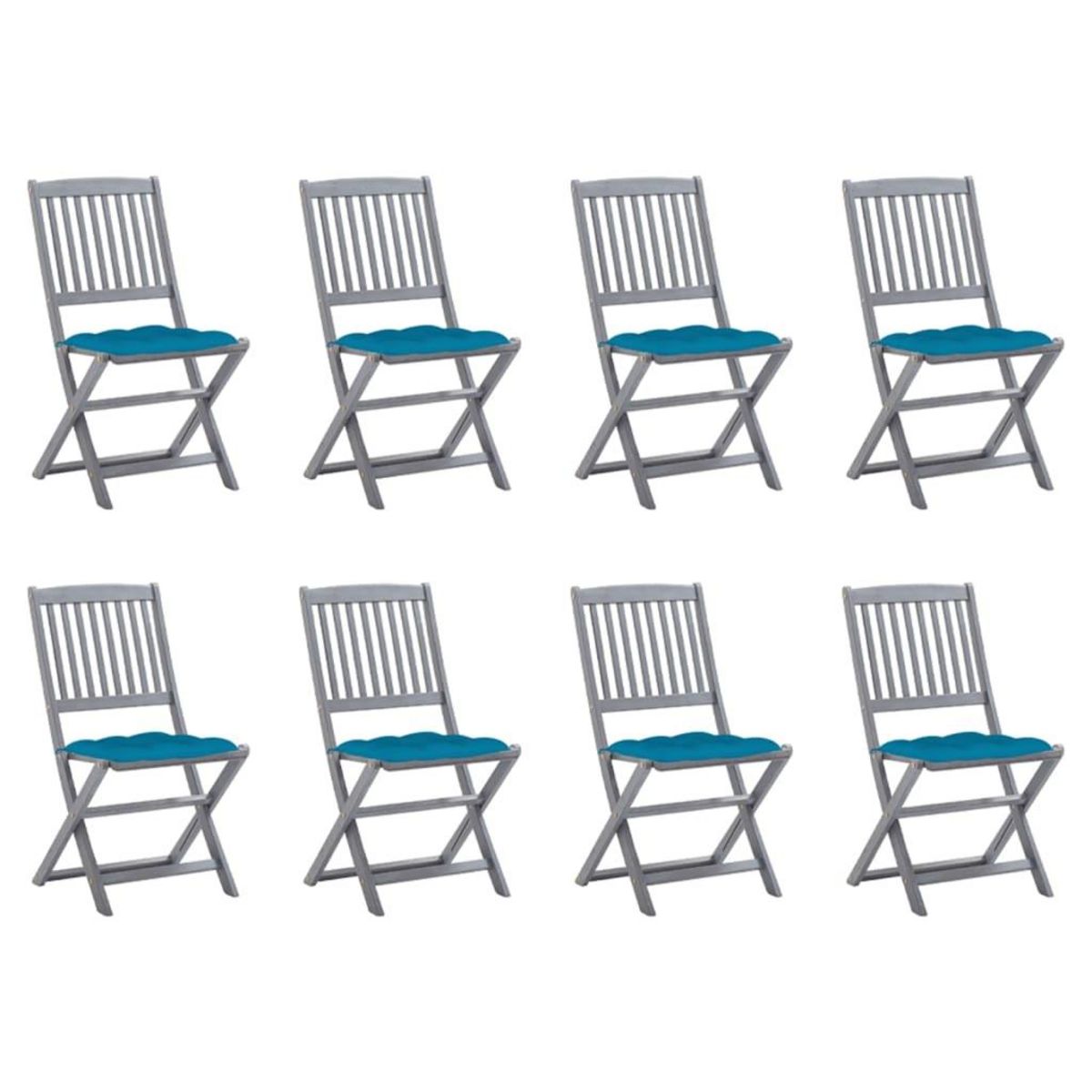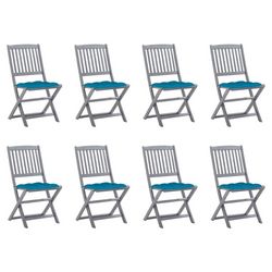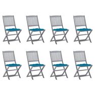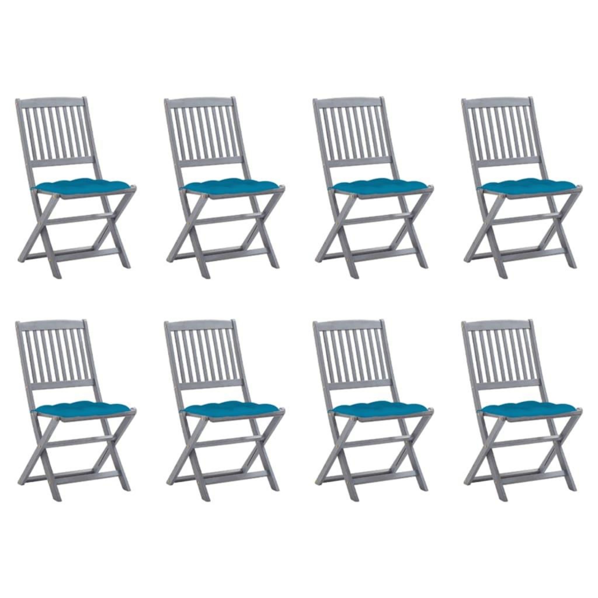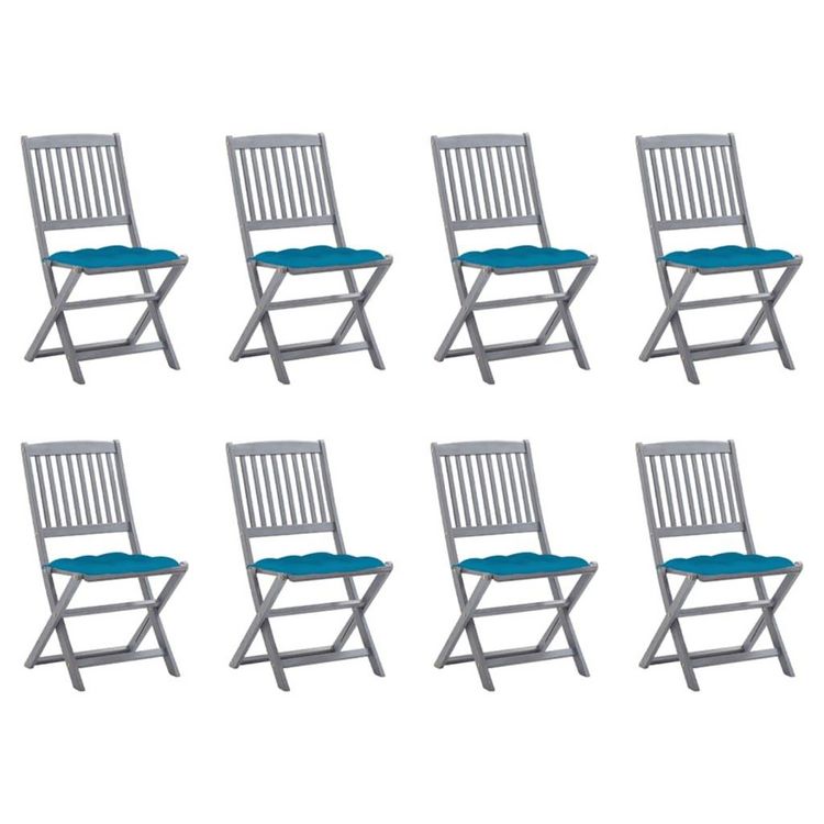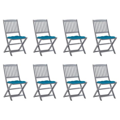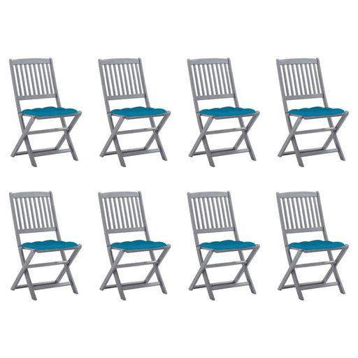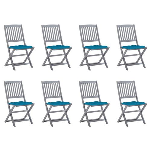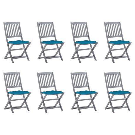 Chaises pliables d'exterieur lot de 8 et coussins Bois d'acacia