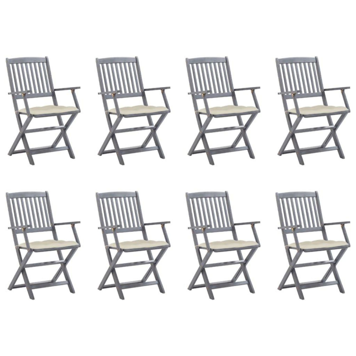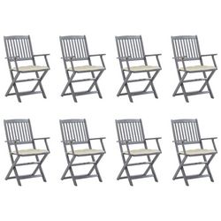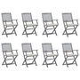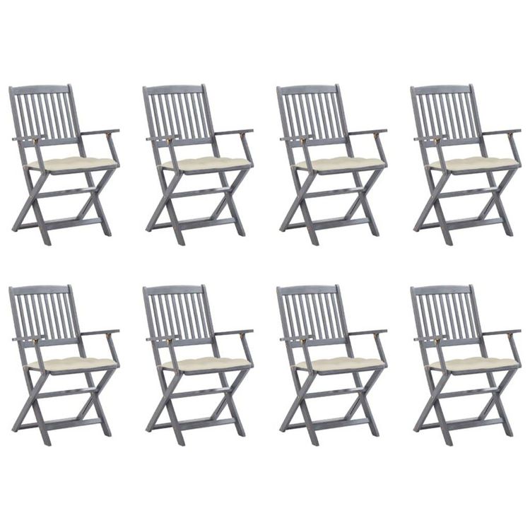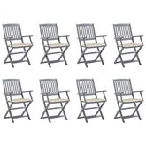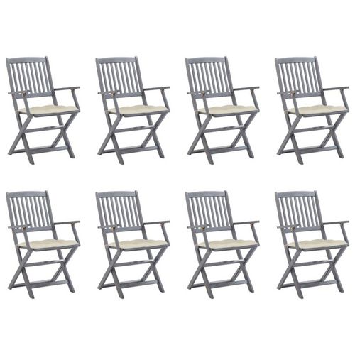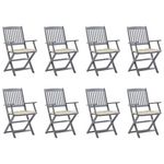 Chaises pliables d'exterieur lot de 8 et coussins Bois d'acacia