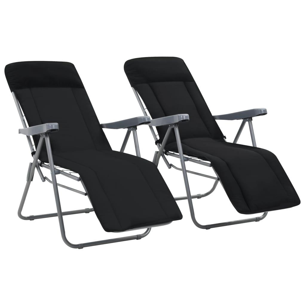 Chaises pliables de jardin avec coussins lot de 2 Noir