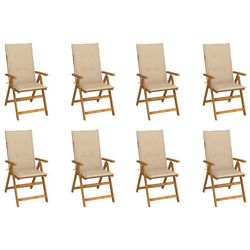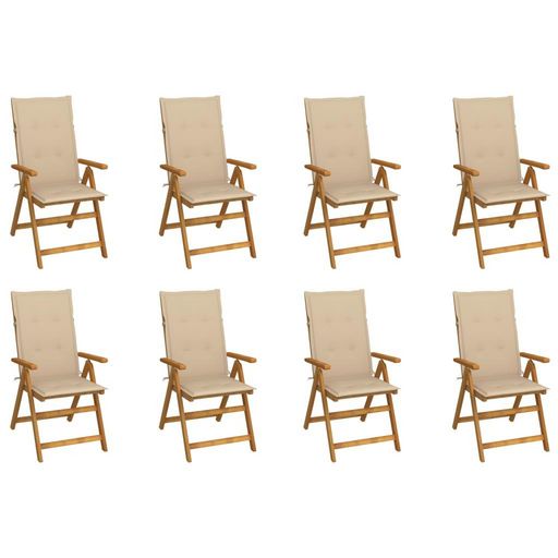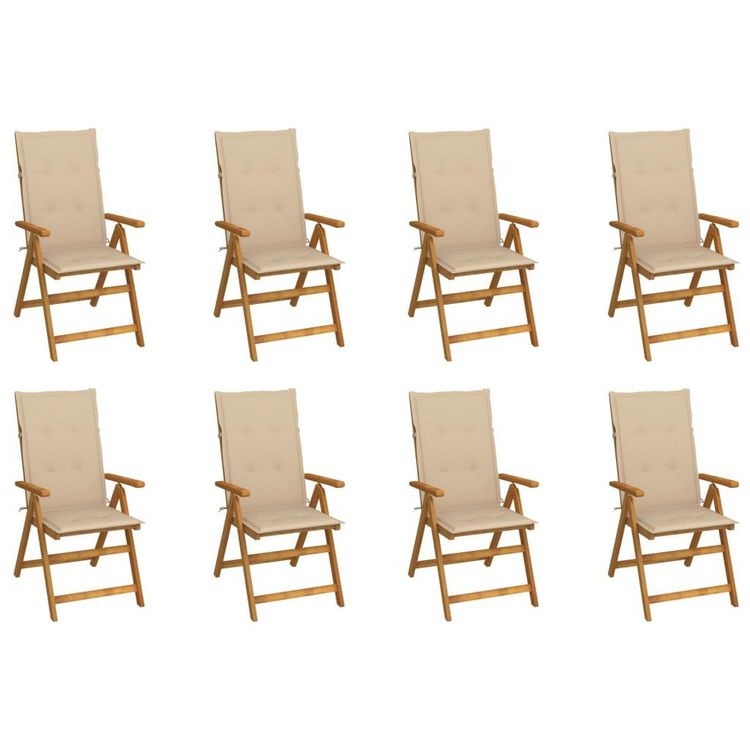 Chaises pliables de jardin avec coussins lot de 8 Bois d'acacia