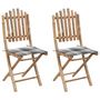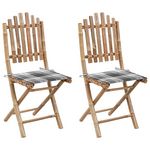 Chaises pliables de jardin lot de 2 avec coussins Bambou