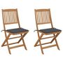 Chaises pliables de jardin lot de 2 avec coussins Bois d'acacia