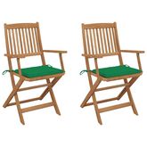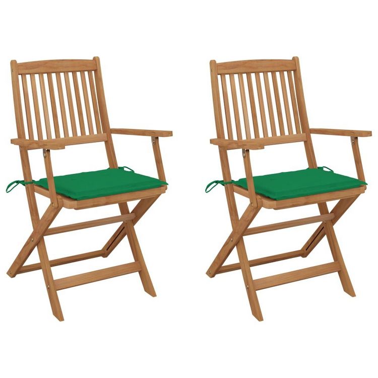Chaises pliables de jardin lot de 2 avec coussins Bois d'acacia