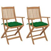 Chaises pliables de jardin lot de 2 avec coussins Bois d'acacia