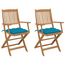 Chaises pliables de jardin lot de 2 avec coussins Bois d'acacia