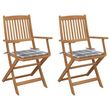 Chaises pliables de jardin lot de 2 avec coussins Bois d'acacia