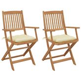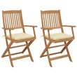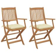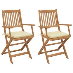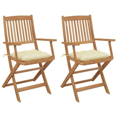 Chaises pliables de jardin lot de 2 avec coussins Bois d'acacia