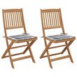 Chaises pliables de jardin lot de 2 avec coussins Bois d'acacia