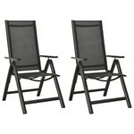 Chaises pliables de jardin lot de 2 Textilene et aluminium Noir
