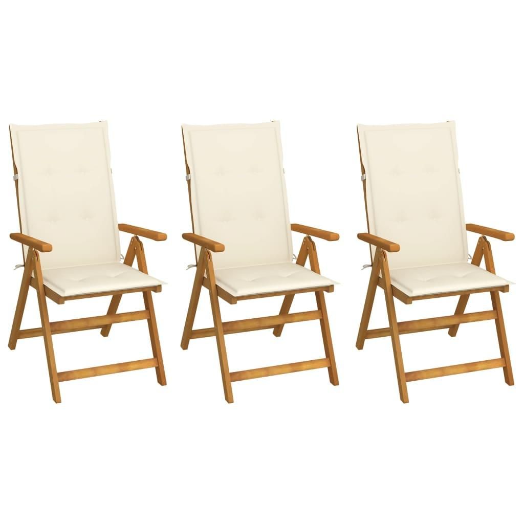 Chaises pliables de jardin lot de 3 avec coussins Bois d'acacia
