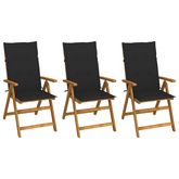 Chaises pliables de jardin lot de 3 avec coussins Bois d'acacia