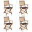 Chaises pliables de jardin lot de 4 avec coussins Bois d'acacia