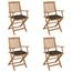 Chaises pliables de jardin lot de 4 avec coussins Bois d'acacia