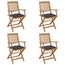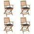 Chaises pliables de jardin lot de 4 avec coussins Bois d'acacia