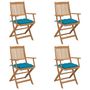 Chaises pliables de jardin lot de 4 avec coussins Bois d'acacia