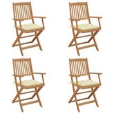 Chaises pliables de jardin lot de 4 avec coussins Bois d'acacia