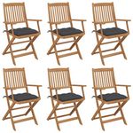 Chaises pliables de jardin lot de 6 avec coussins Bois d'acacia