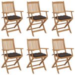 Chaises pliables de jardin lot de 6 avec coussins Bois d'acacia