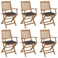 Chaises pliables de jardin lot de 6 avec coussins Bois d'acacia