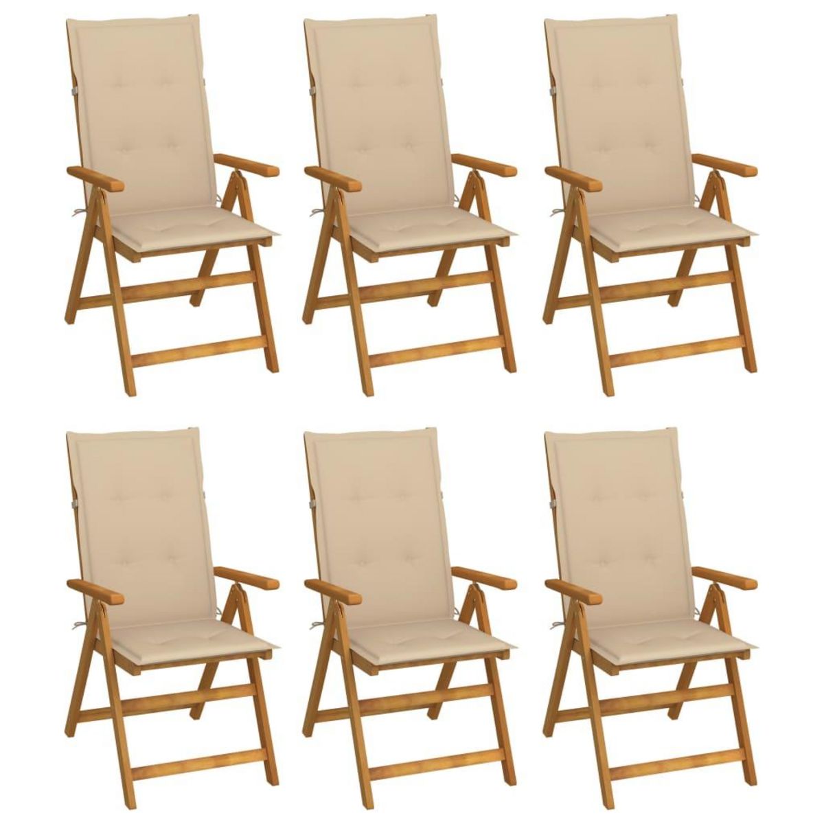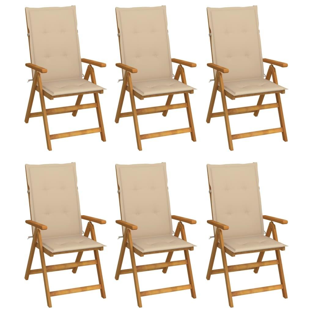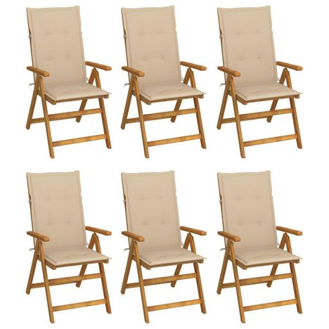 Chaises pliables de jardin lot de 6 avec coussins Bois d'acacia