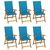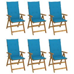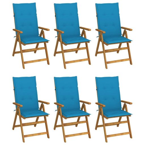 Chaises pliables de jardin lot de 6 avec coussins Bois d'acacia