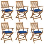 Chaises pliables de jardin lot de 6 avec coussins Bois d'acacia