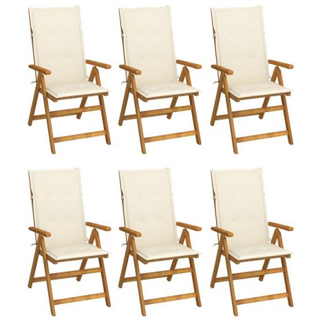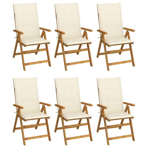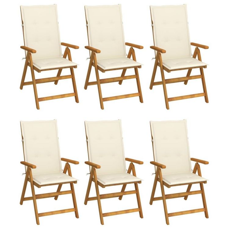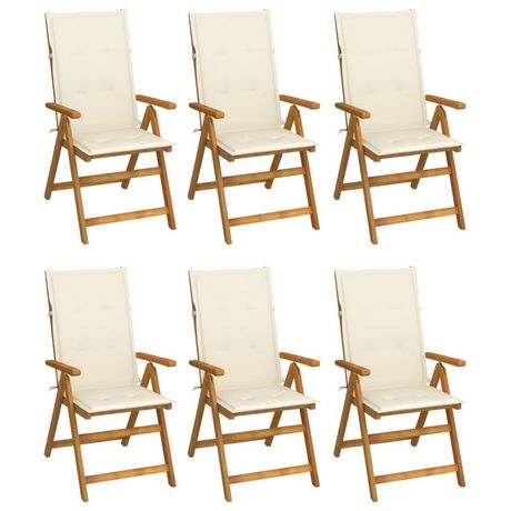 Chaises pliables de jardin lot de 6 avec coussins Bois d'acacia