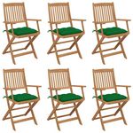 Chaises pliables de jardin lot de 6 avec coussins Bois d'acacia