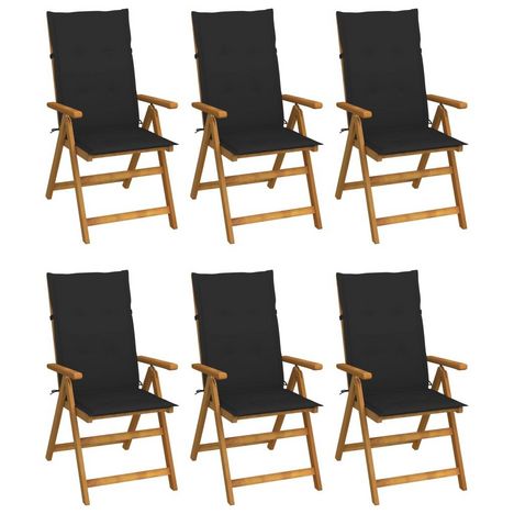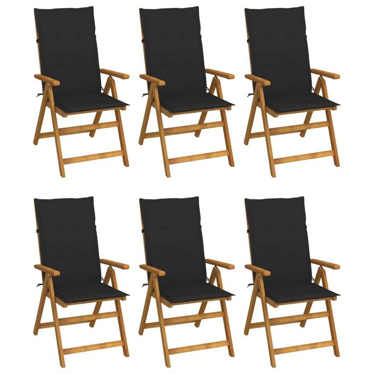 Chaises pliables de jardin lot de 6 avec coussins Bois d'acacia