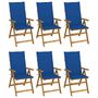 Chaises pliables de jardin lot de 6 avec coussins Bois d'acacia