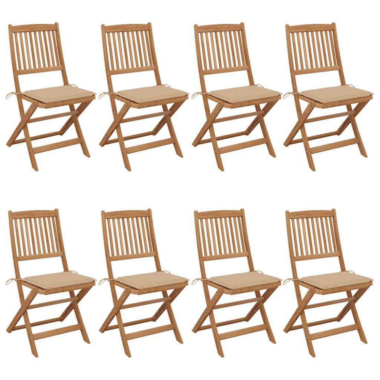 Chaises pliables de jardin lot de 8 avec coussins Bois d'acacia
