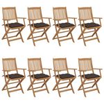 Chaises pliables de jardin lot de 8 avec coussins Bois d'acacia