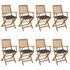 Chaises pliables de jardin lot de 8 avec coussins Bois d'acacia