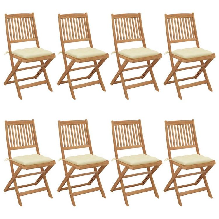 Chaises pliables de jardin lot de 8 avec coussins Bois d'acacia