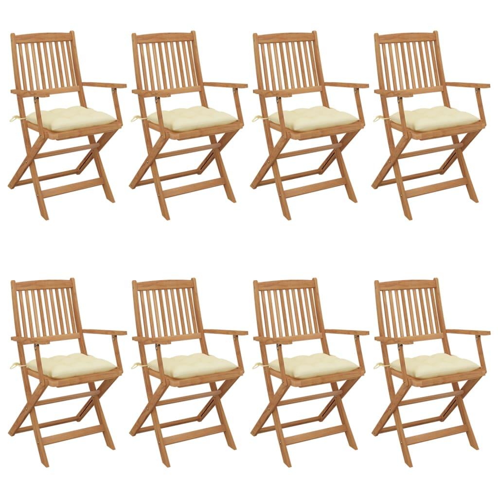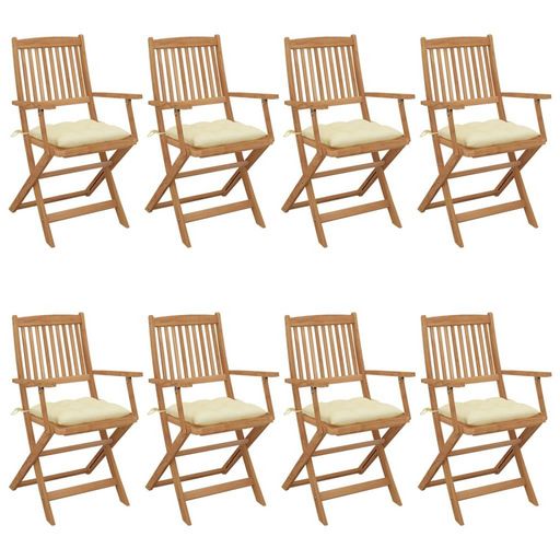Chaises pliables de jardin lot de 8 avec coussins Bois d'acacia