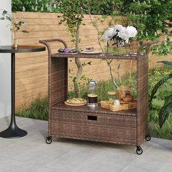 Avec un design polyvalent et spacieux, ce chariot de bar peut facilement transporter des ustensiles de cuisine et des plats delicieux. Ce chariot est fabrique en resine tressee resistante aux intemperies et necessite moins d'entretien. Il est adapte a une utilisation quotidienne. Le chariot de jardi