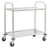Les grands plateaux offrent amplement d'espace pour la presentation optimale des aliments et des boissons. Le cadre en acier inoxydable maintient le chariot de service stable et robuste meme a pleine charge. Grace aux roulettes a roulement en douceur, le chariot peut etre deplace sans effort et sans bruit. De plus, deux des roulettes ont des freins pour empecher le chariot de rouler, ce qui signifie que vous pouvez egalement l'utiliser pour stocker des outils et d'autres produits menagers quotidiens.