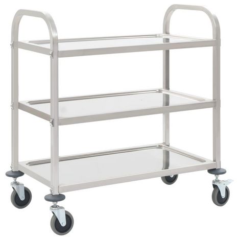Chariot de cuisine a 3 niveaux 96,5x55x90 cm Acier inoxydable