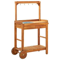 Notre chariot de cuisine de jardin en bois massif d'acacia vous permet de preparer et de servir de la nourriture sur le dessus et presente egalement une solution de rangement intelligente avec un tiroir, une etagere et 9 crochets.