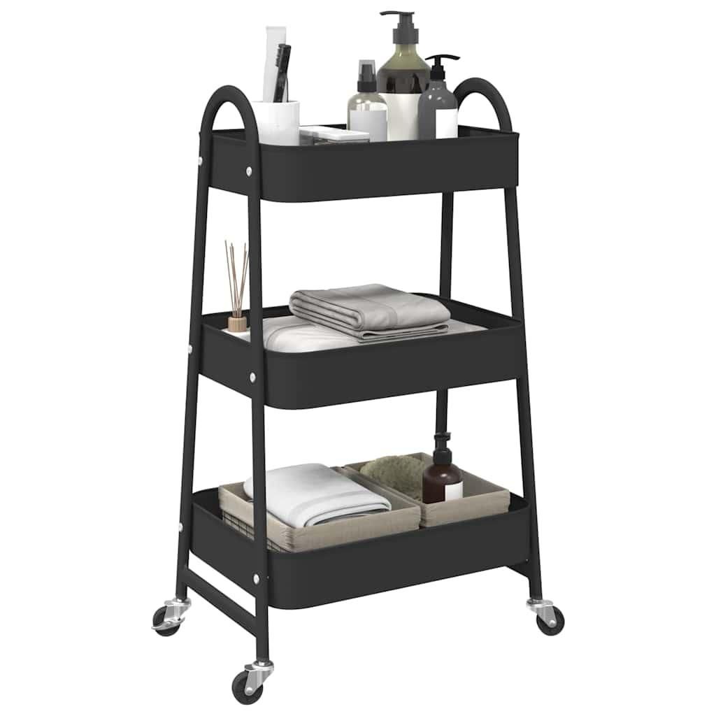 Chariot de rangement a 3 niveaux noir 42x41,5x77 cm acier