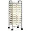 Ce chariot a tiroirs presente un style concis et pratique, qui vise a offrir suffisamment d'espace pour garder votre bureau et vos produits de beaute bien organises et a portee de main. Le cadre chrome offre un support de poids solide et durable et 10 paniers amovibles vous permettent de garder vos