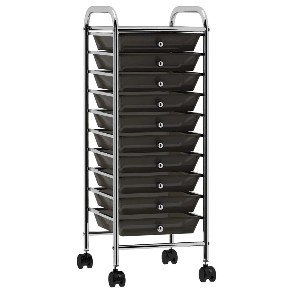 Chariot de rangement mobile a 10 tiroirs Noir Plastique