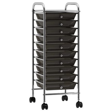 Ce chariot a tiroirs presente un style concis et pratique, qui vise a offrir suffisamment d'espace pour garder votre bureau et vos produits de beaute bien organises et a portee de main. Le cadre chrome offre un support de poids solide et durable et 10 paniers amovibles vous permettent de garder vos
