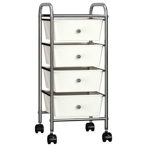 Chariot de rangement mobile a 4 tiroirs Blanc Plastique